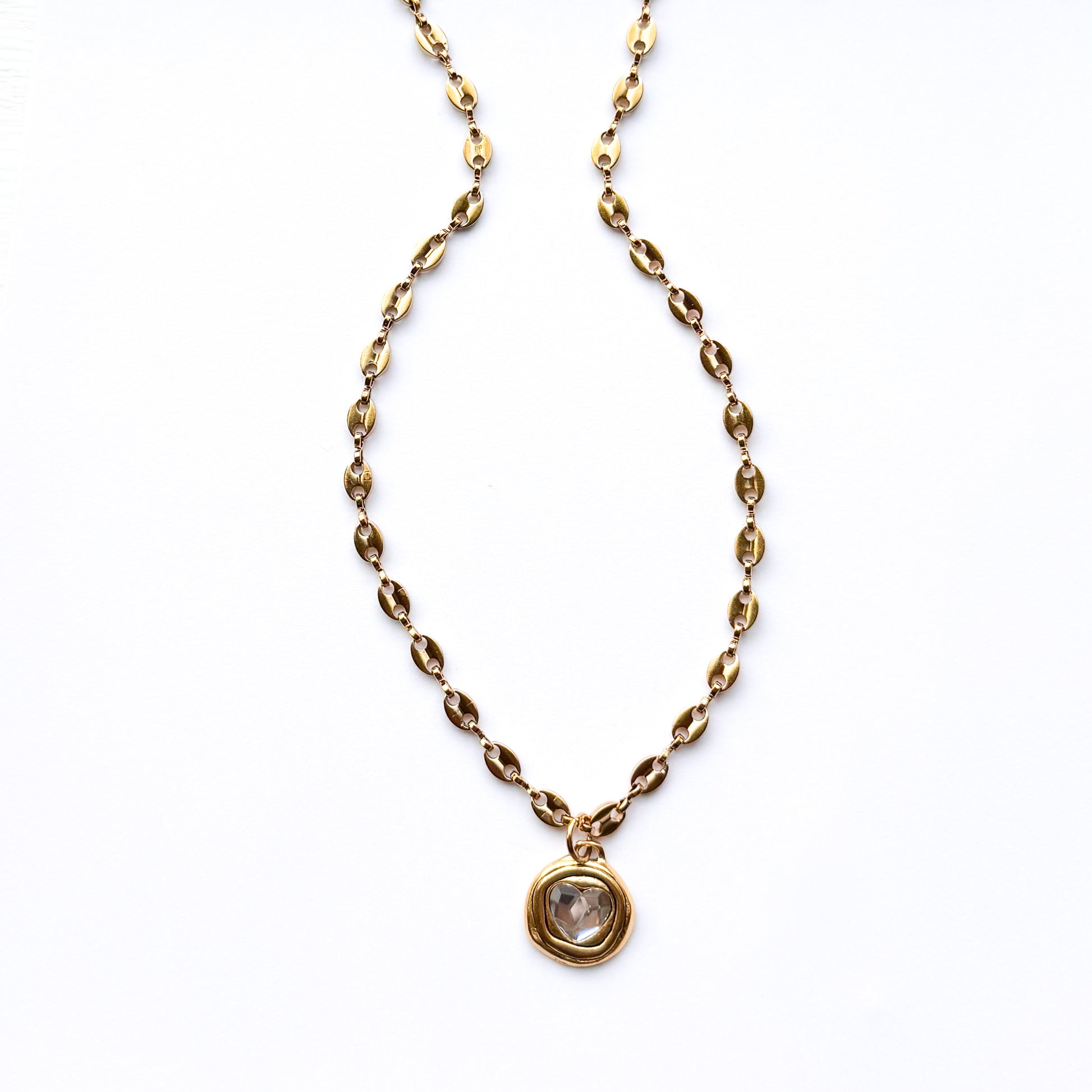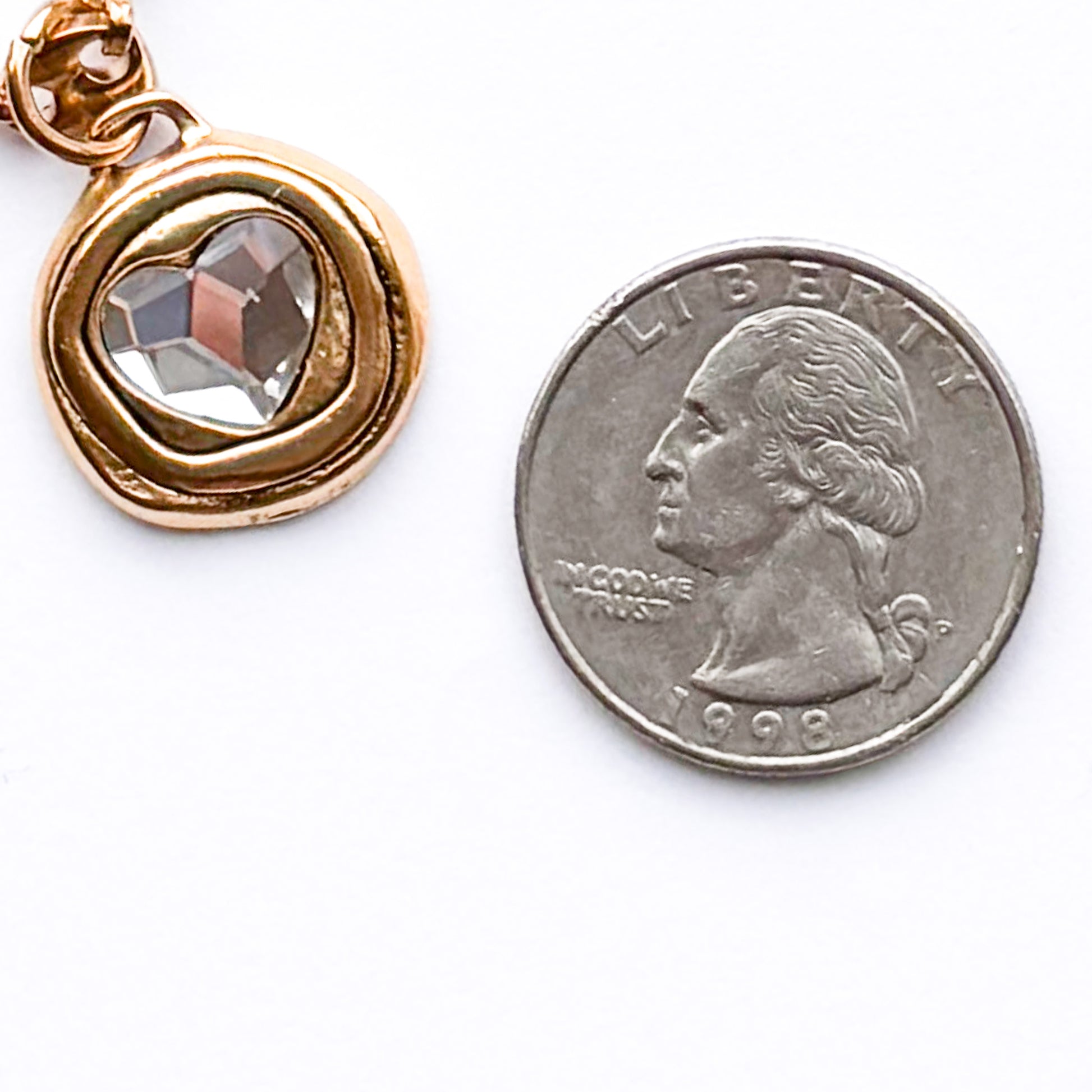 The Bean Gold Swarovski Heart Necklace features a gold bean-style chain paired with a sparkling Swarovski crystal heart coin pendant. It layers beautifully or shines on its own.